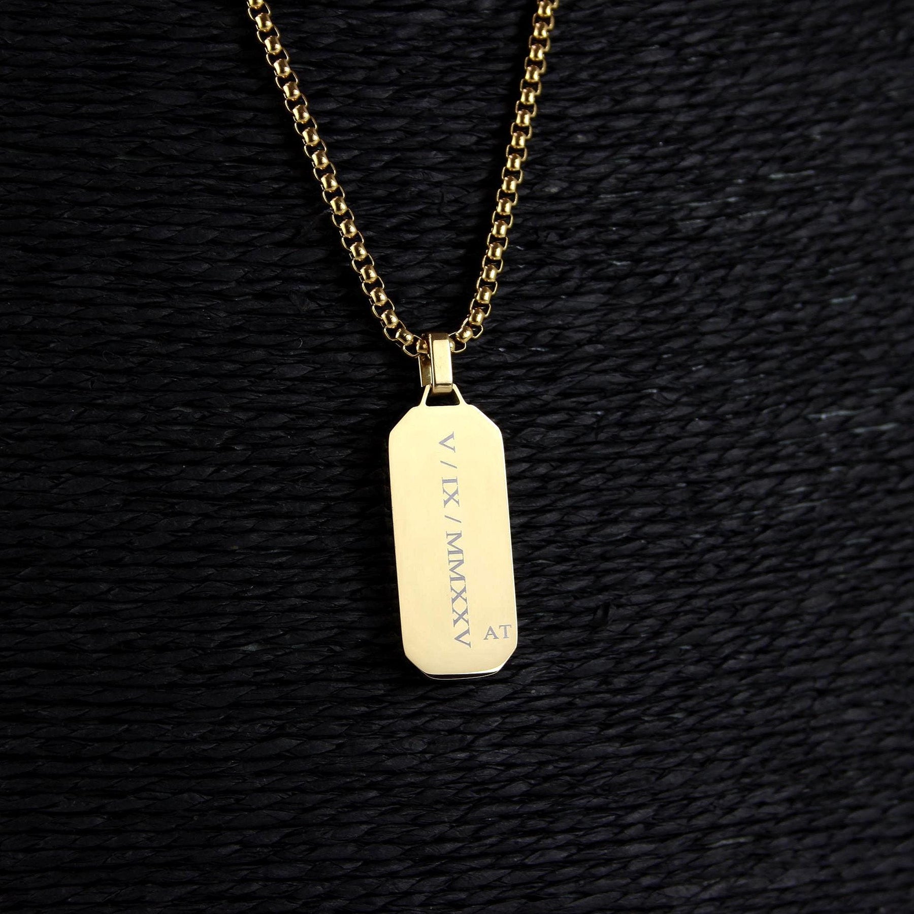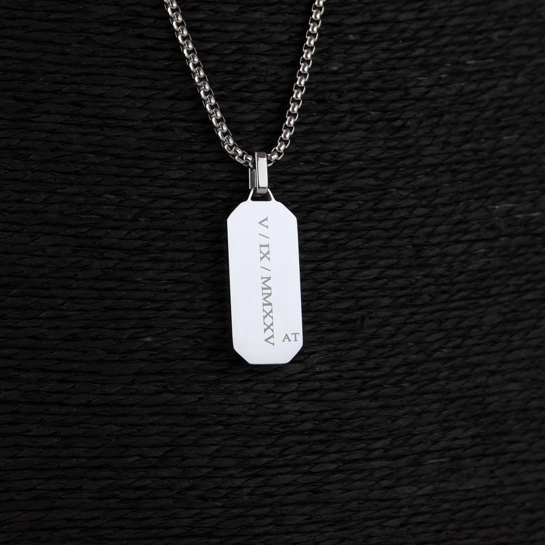 Celebrate a meaningful moment with our Black Inlay Pendant, custom engraved on the back with your chosen date in Roman numerals. With a sleek and bold design, this piece is perfect for marking anniversaries, milestones, or simply creating a timeless keepsake.