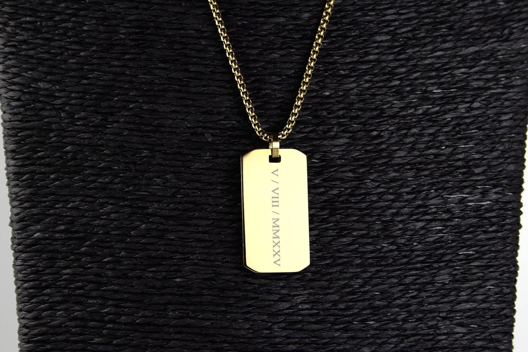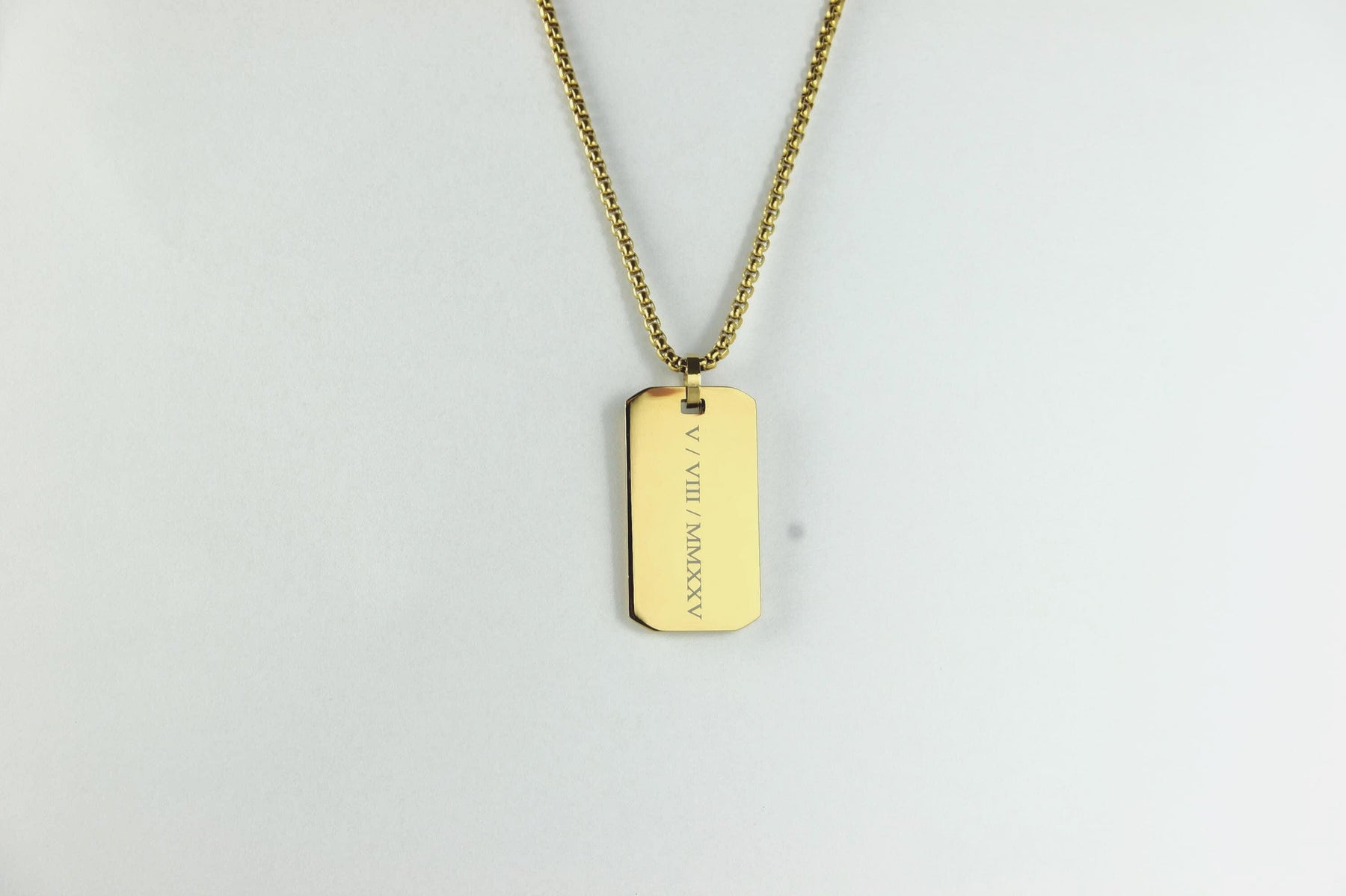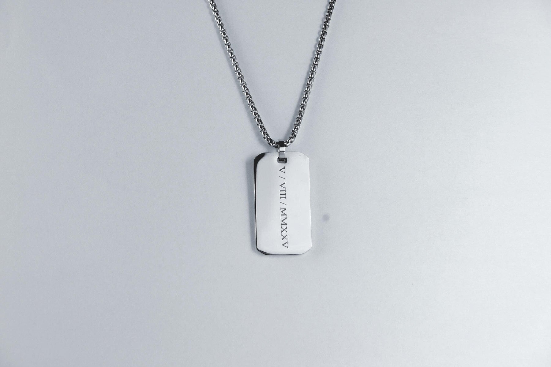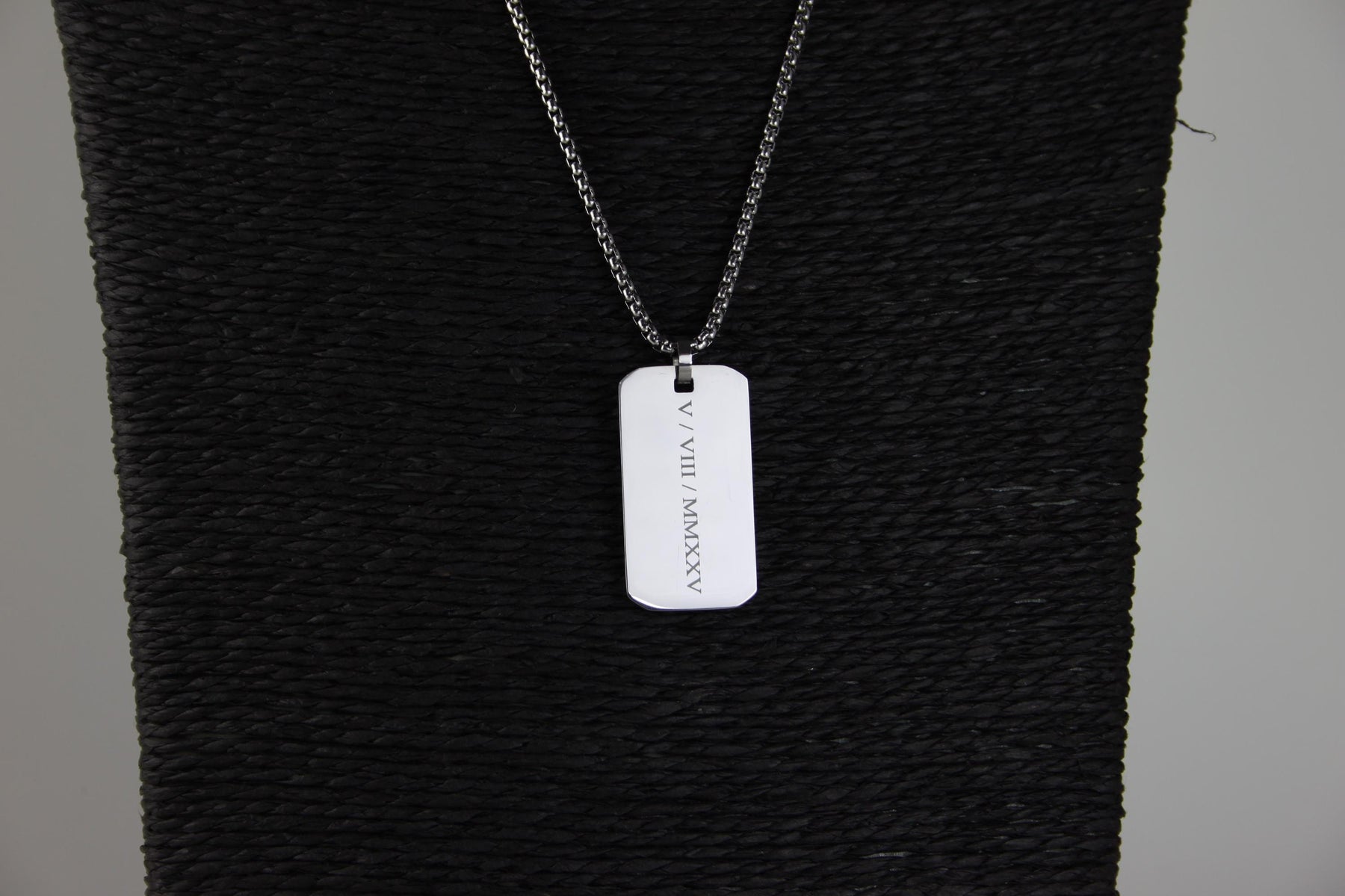 Custom Roman Numerals Rectangle Pendant Necklace Personalized Date Jewellery Gift for Him or Her Unique Minimalist Engraved Keepsake