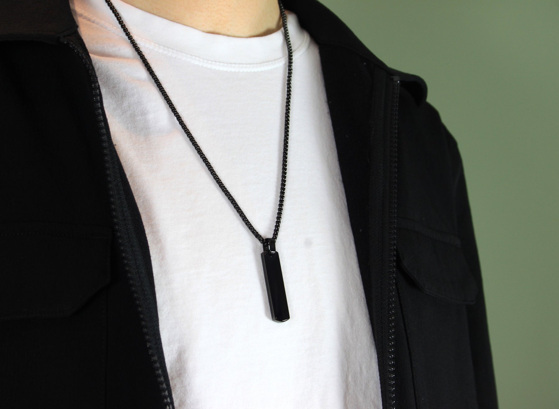 Celebrate a location that means the world to you with this black stainless steel bar pendant, custom engraved with your coordinates. Whether it’s a first date, favourite city, or unforgettable memory, this minimal piece is a bold and meaningful way to carry it with you.