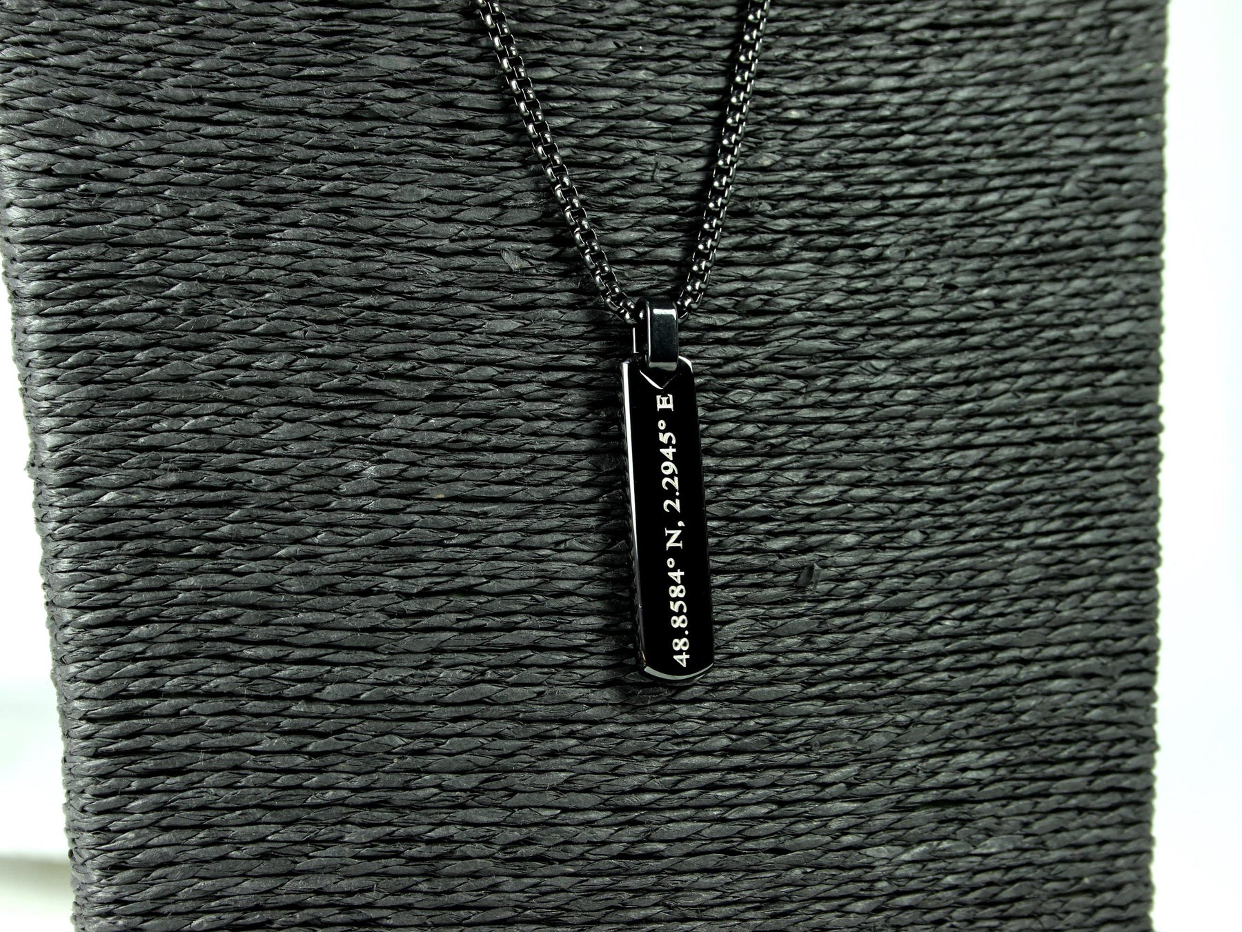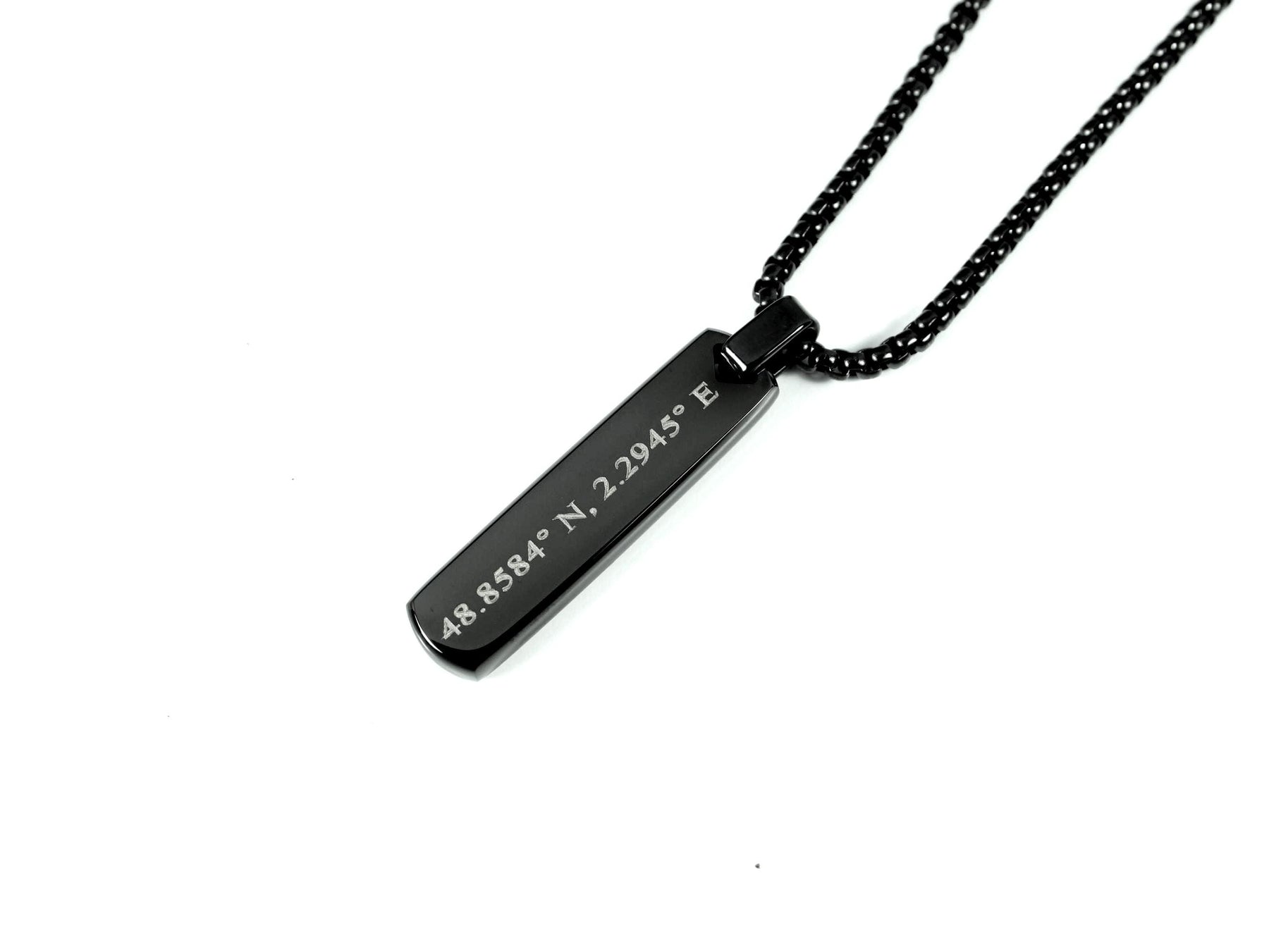 Celebrate a location that means the world to you with this black stainless steel bar pendant, custom engraved with your coordinates. Whether it’s a first date, favourite city, or unforgettable memory, this minimal piece is a bold and meaningful way to carry it with you.