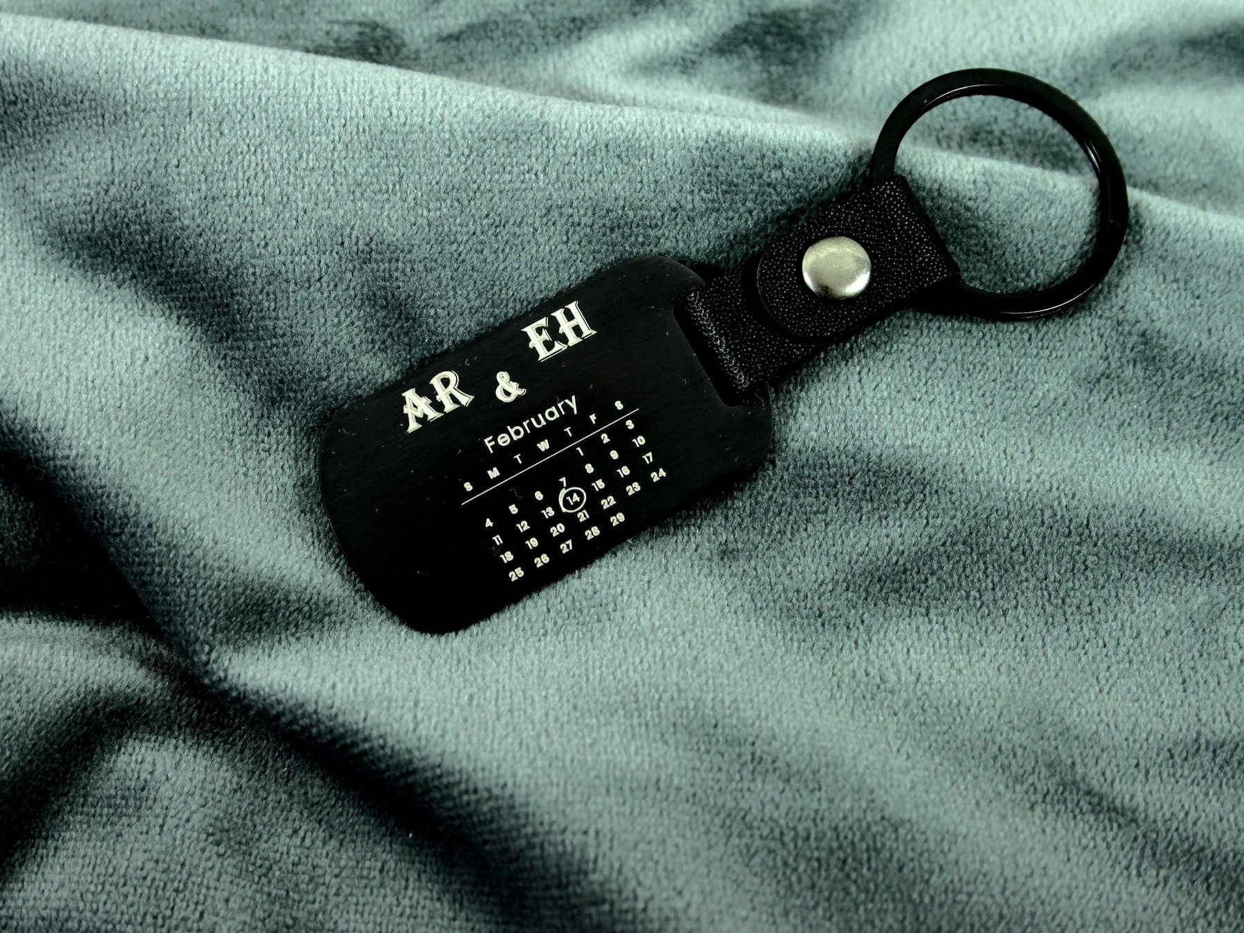 Celebrate your milestone moment with this sleek Black Leather Strap Dog Tag. Featuring your custom initials and a calendar with your meaningful date circled, this piece is both bold and personal. Crafted from durable black PVD-coated stainless steel and attached to a strong leather strap, it’s a rugged keepsake perfect for everyday carry — whether on keys, bags, or zippers.