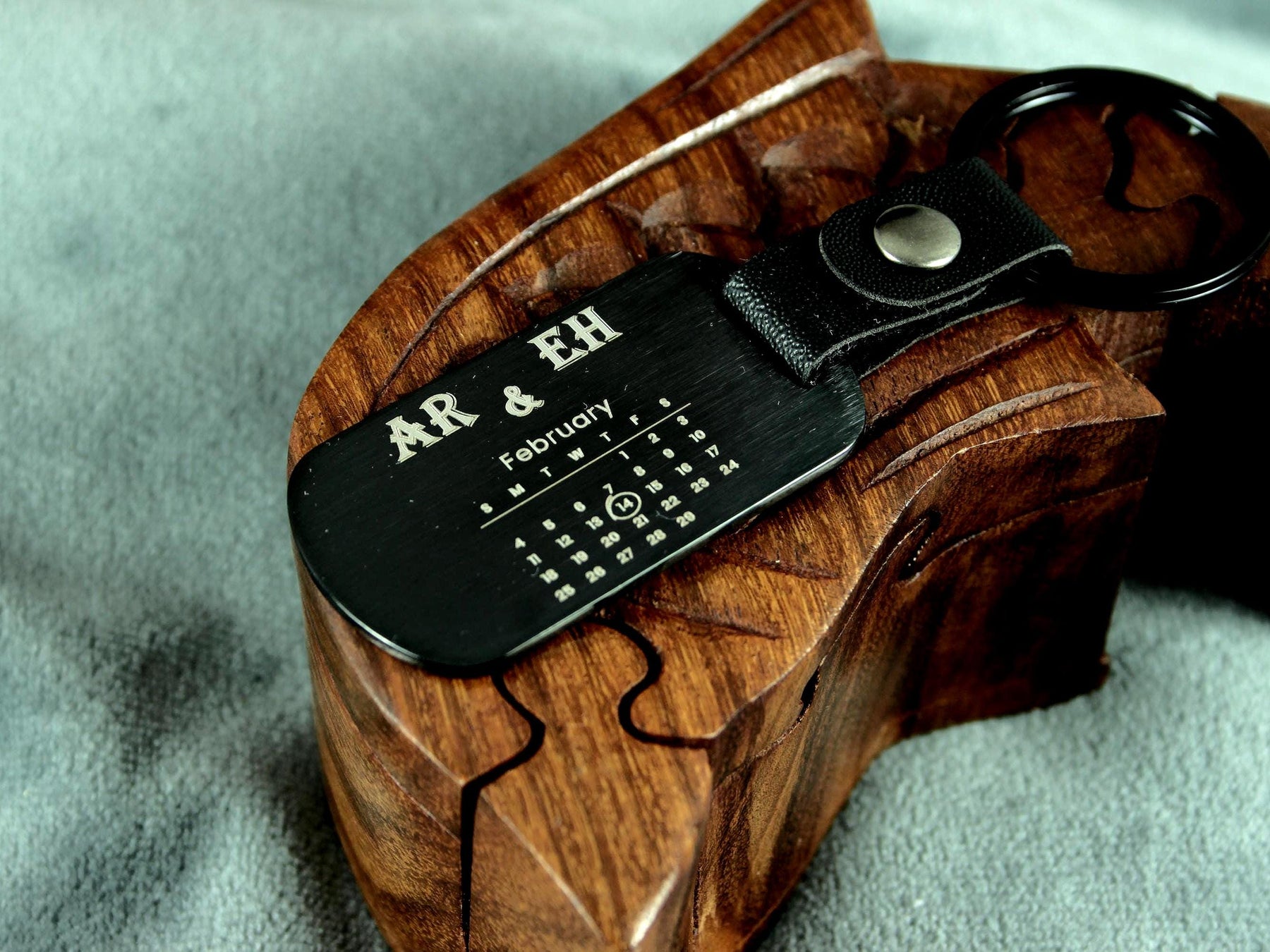 We’ll engrave the initials on top and highlight the date on a custom mini calendar.