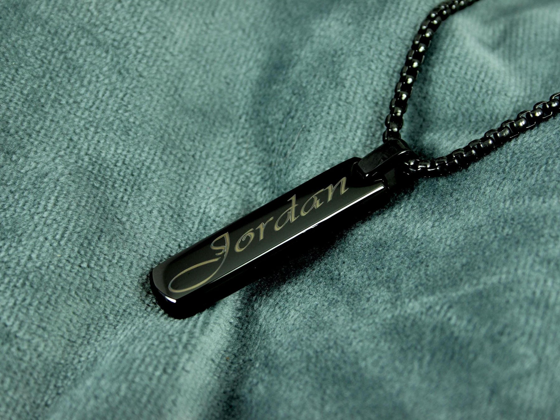 Make it personal and bold. This Black Bar Pendant Necklace is engraved with your chosen name in elegant swirly script, giving it a powerful presence with a soft, meaningful touch. Crafted in durable stainless steel with a rich black PVD coating, it’s the perfect gift for someone stylish and sentimental.