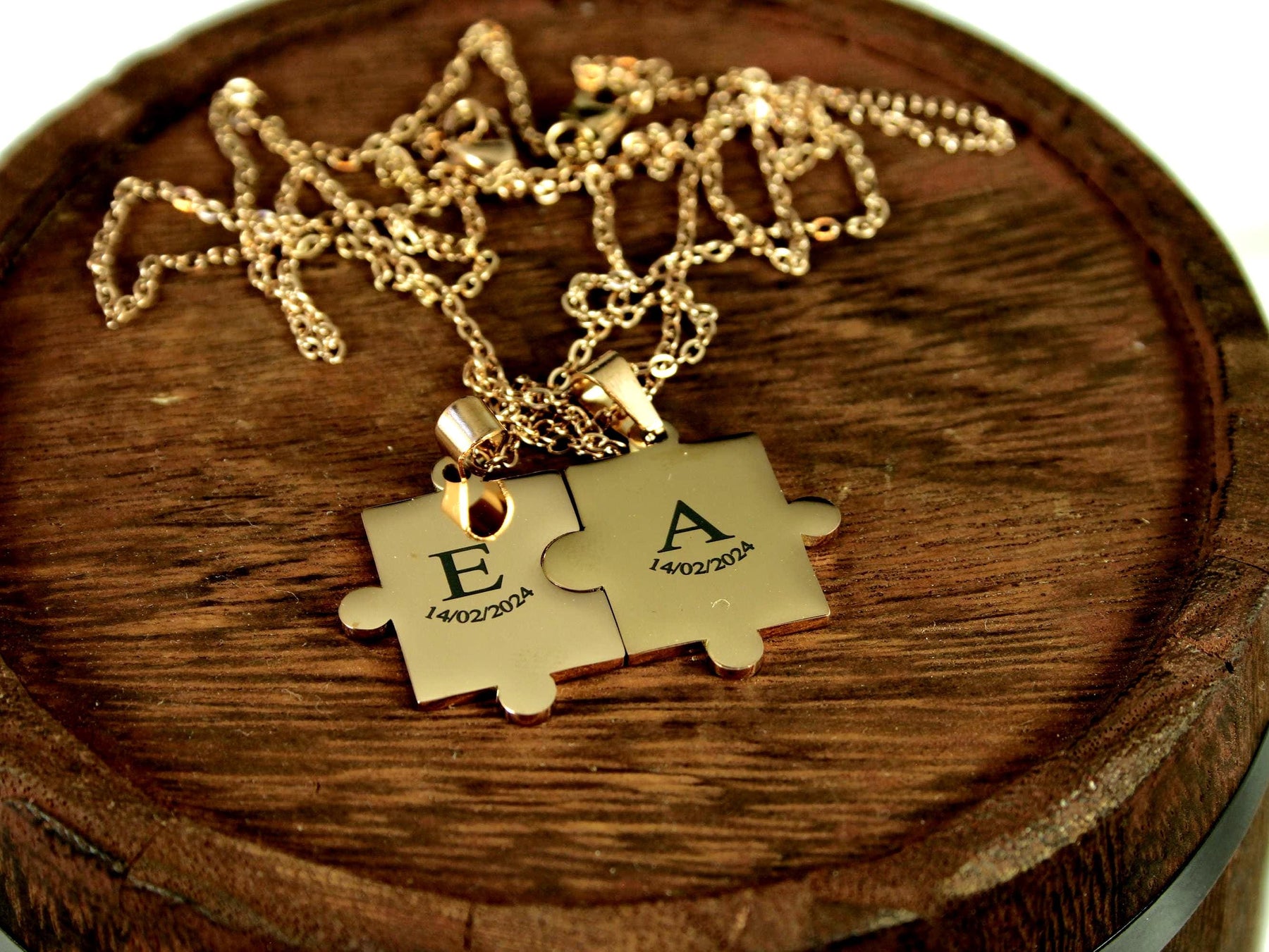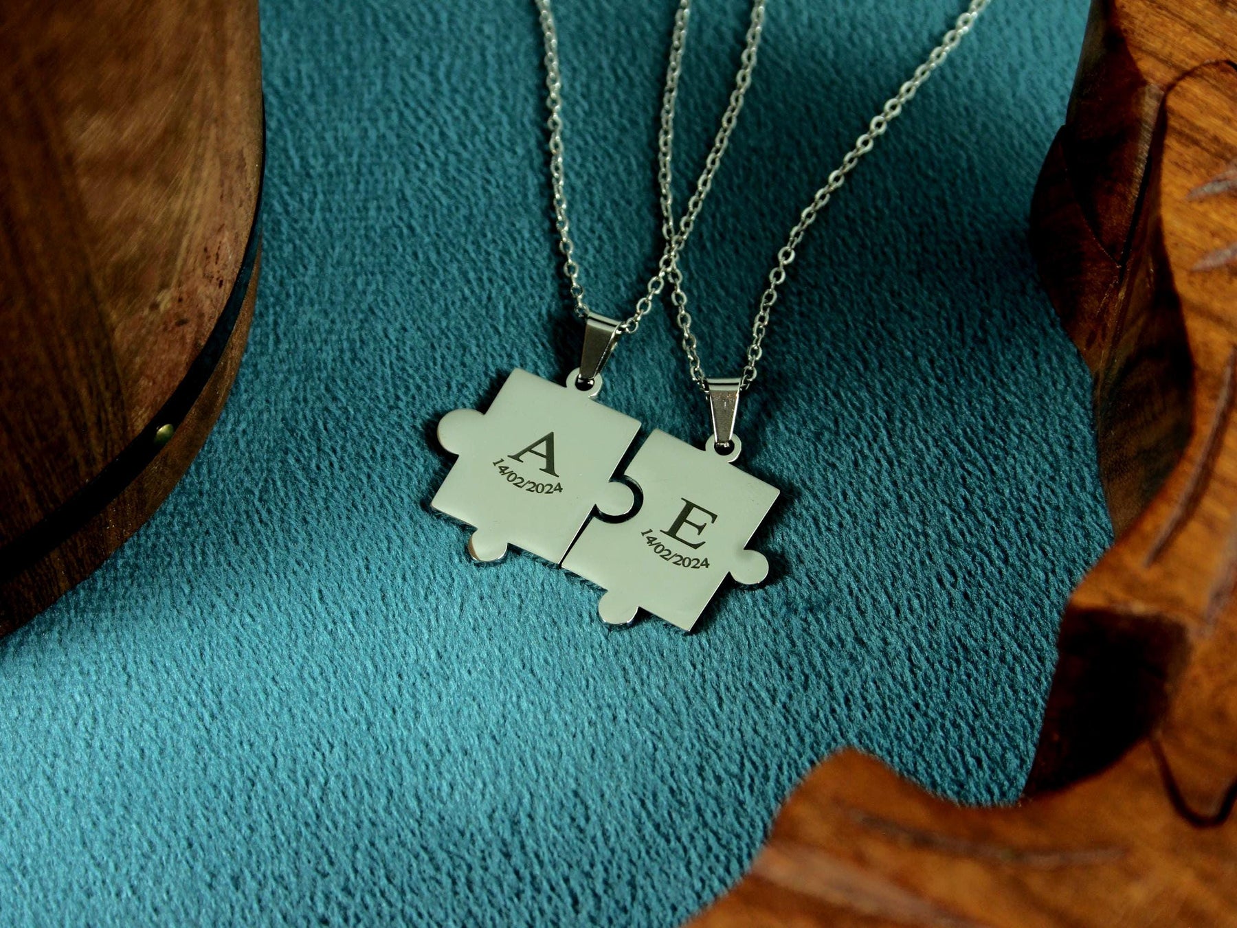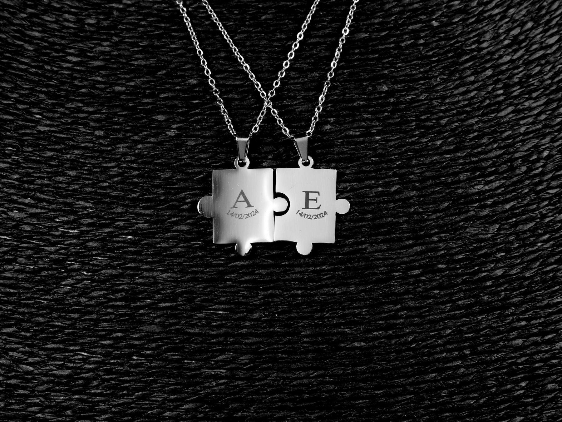 Celebrate unity with our Couples Puzzle Piece Necklace, available in silver, gold and rose gold finishes. Personalise each pendant with two initials and a meaningful date. The smooth puzzle silhouette feels lovely in hand, making this a thoughtful, fidget-friendly keepsake for everyday wear.