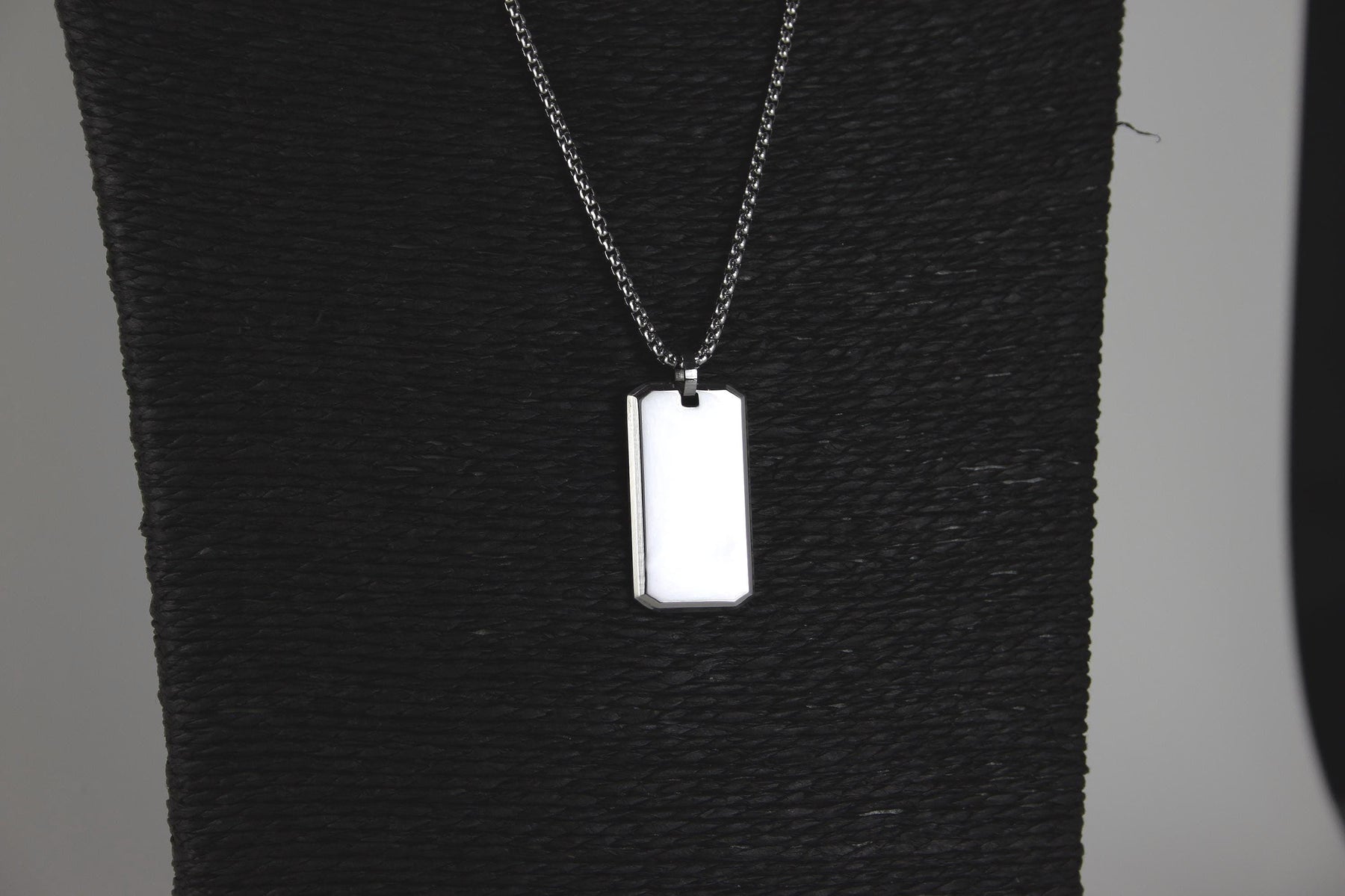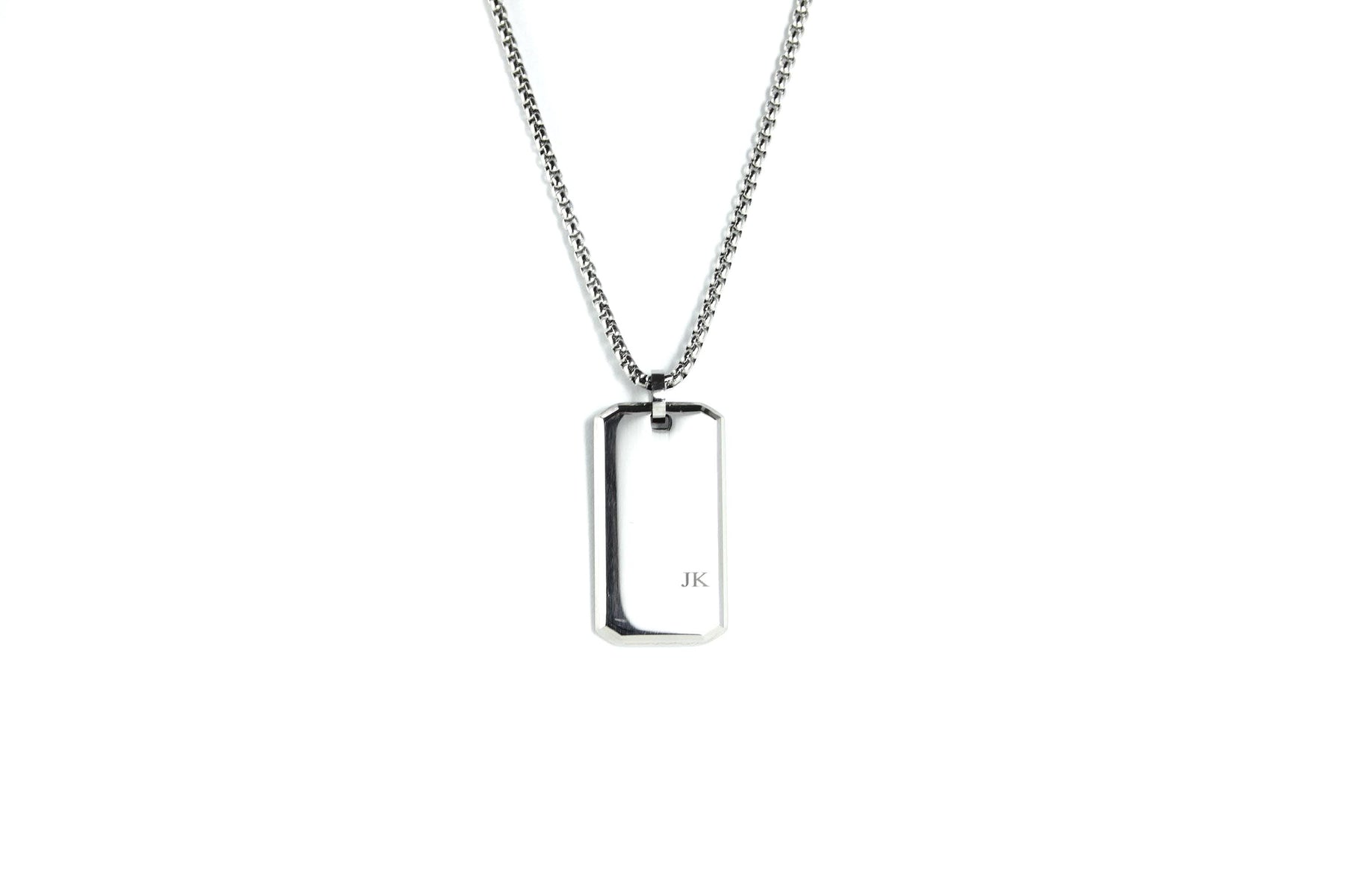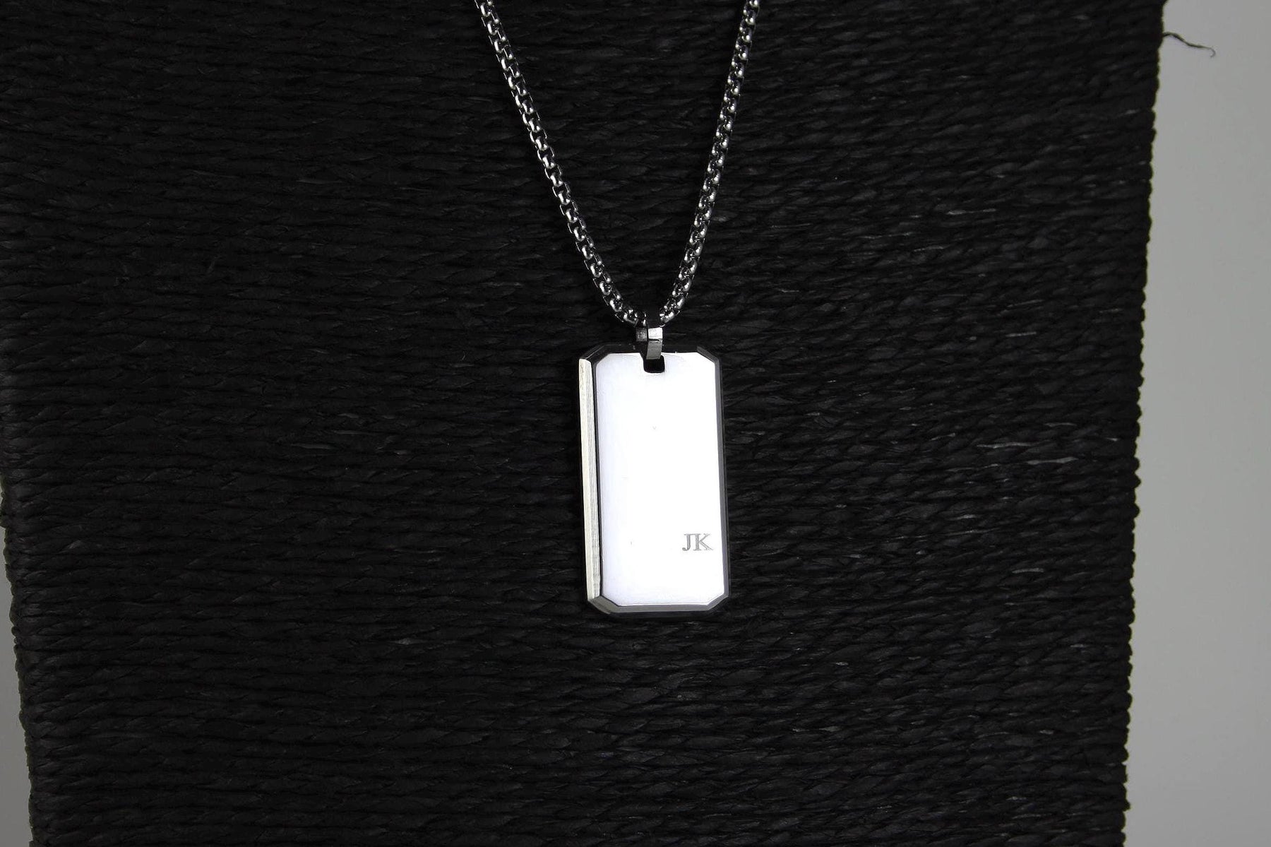 Minimalist Initials Rectangle Pendant Necklace Personalized Jewellery Gift for Him or Her Unique Everyday Engraved Keepsake
