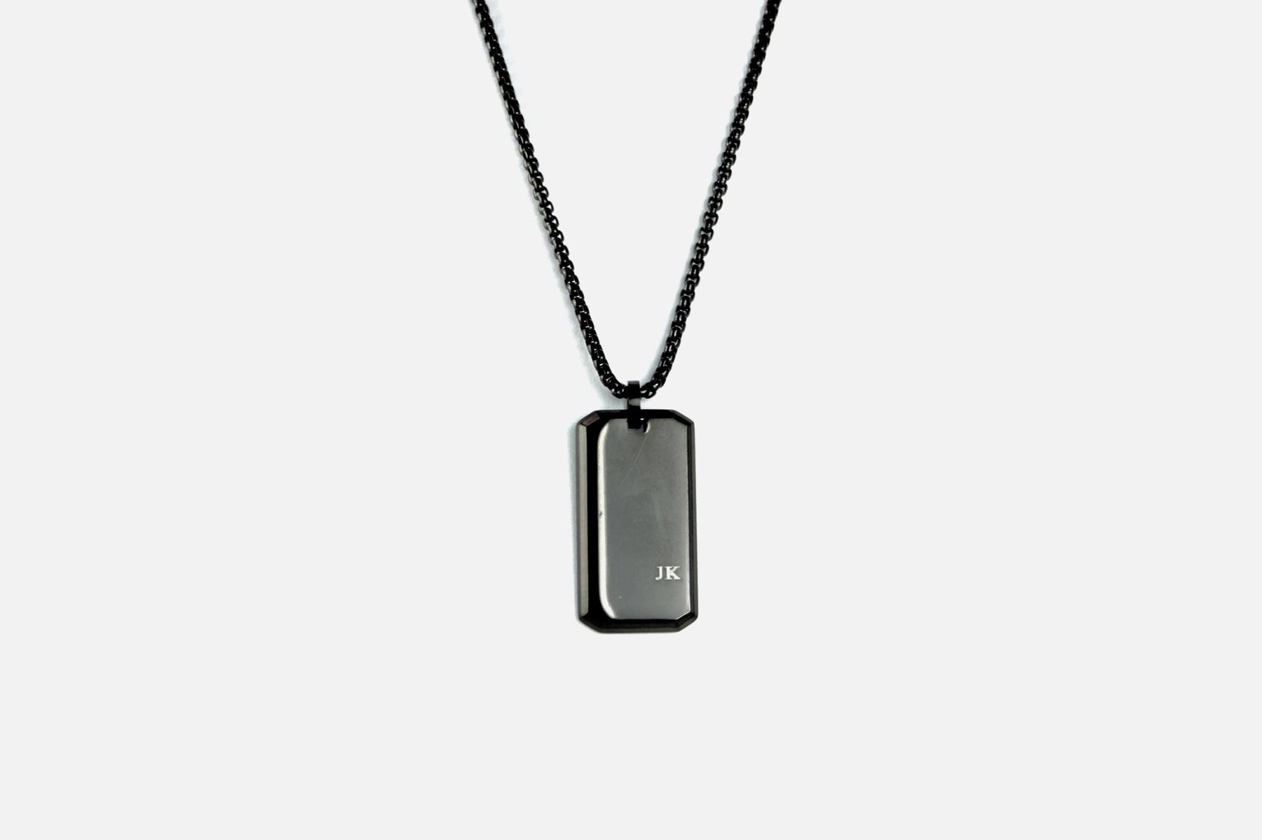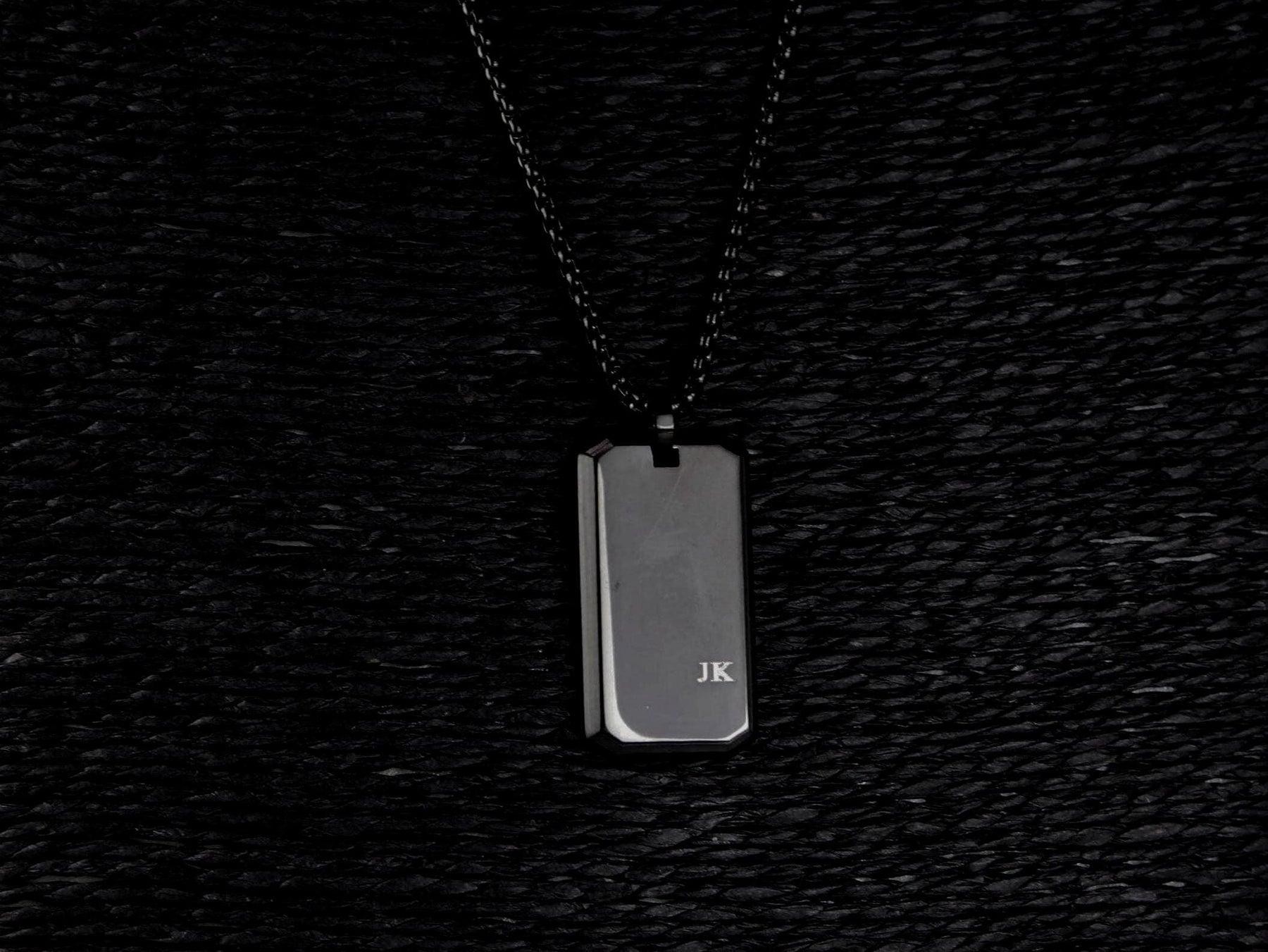 small initials necklace, minimal rectangle pendant, gold personalised pendant, silver initial bar necklace, black engraved charm, custom subtle jewellery, couples rectangle necklace, dainty name pendant gift, stainless steel bar charm, modern initial necklace, discreet name jewellery, everyday minimalist pendant, personalised rectangle tag