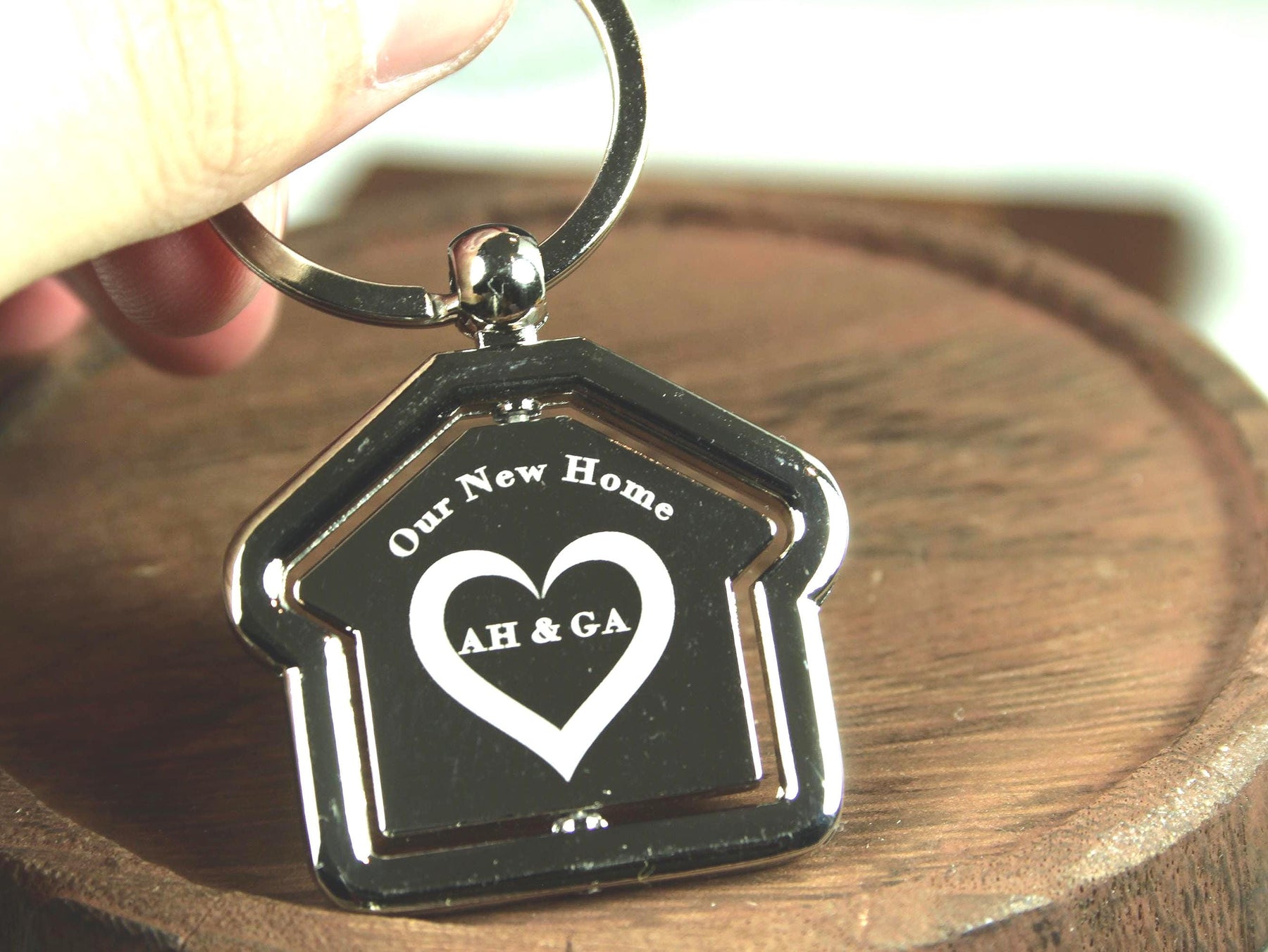 rotating couples keyring, personalised new home gift, engraved heart keychain, custom housewarming present, couple’s moving out gift, unique couple keyring, first home keepsake, personalised house keychain, romantic new home gift, love heart keyring, couple’s initials keychain, stainless steel keyring, meaningful housewarming gift